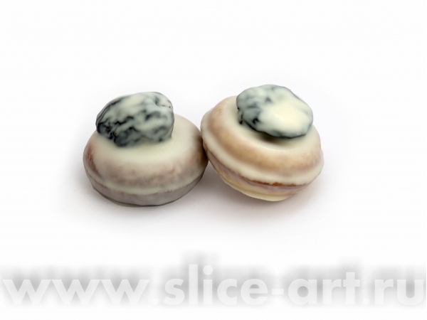 Сдобное печенье в форме бублика в белой глазури с черносливом.