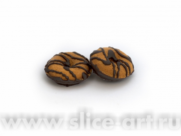 Сдобное печенье в форме бублика с глазированным дном и темным декором.